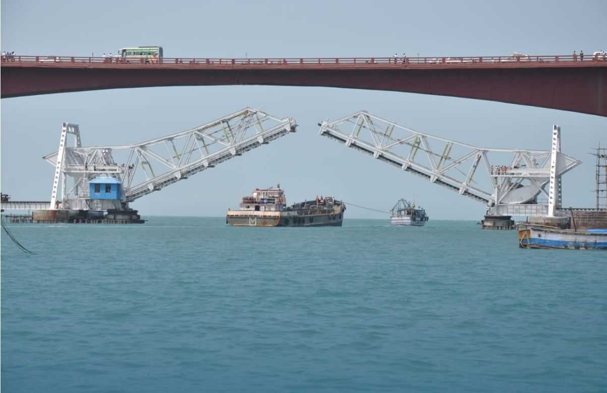 The Pamban channel lies between the mainland India and Rameswaram Island, over which a 2.3 km long Pamban Bridge is constructed.